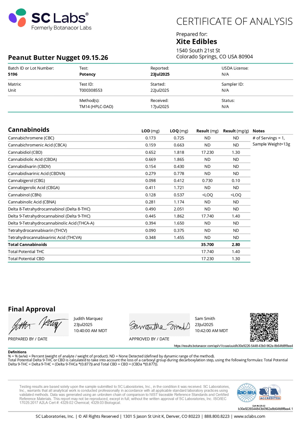 Ingredients: Sugar, Cocoa Butter, Whole Milk Powder, Chocolate Liquor, Nonfat Dry Milk ,Cream, Whey, Peanuts, Milkfat, Organic & Sustainably Sourced Palm Stearin, Coconut Oil, Full Spectrum Hemp Extract, Sunflower Lecithin, Natural Vanilla Extract