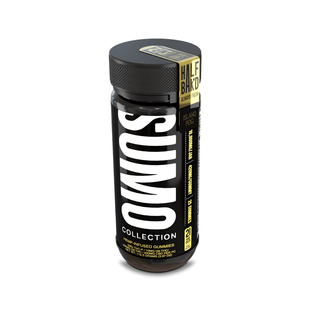 Sumo Gummies, a tantalizing new flavor from HALF BAK’D. Bursting with the flavors of Berries each gummy is a juicy escape to island bliss. Available 25ct jars, these gummies are packed with over 10,000 mg of THC-A, THC-P, and Delta-8, delivering a smooth and uplifting experience.