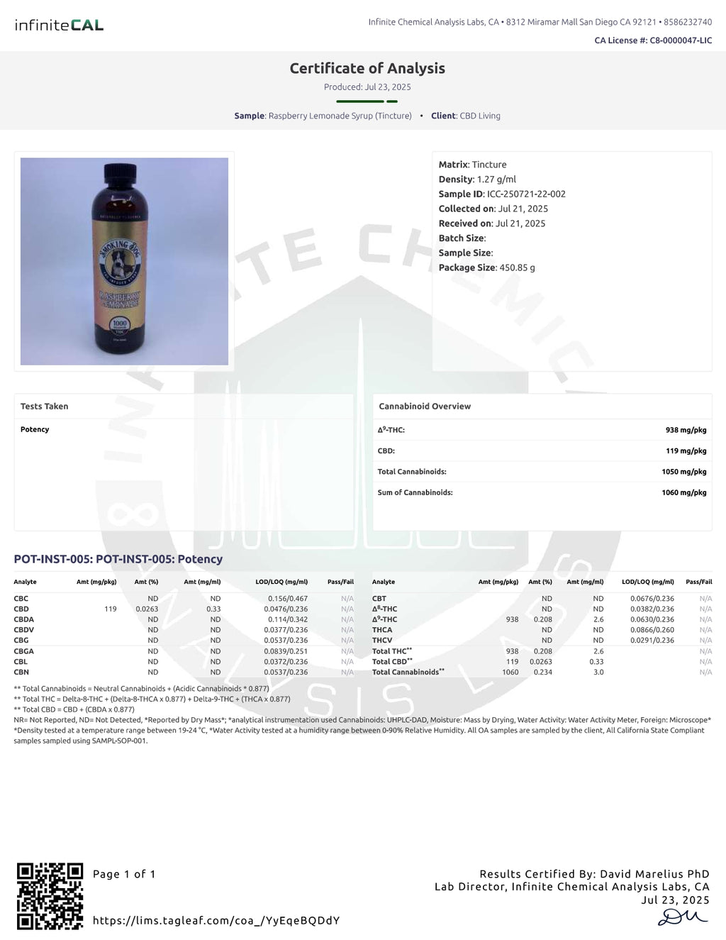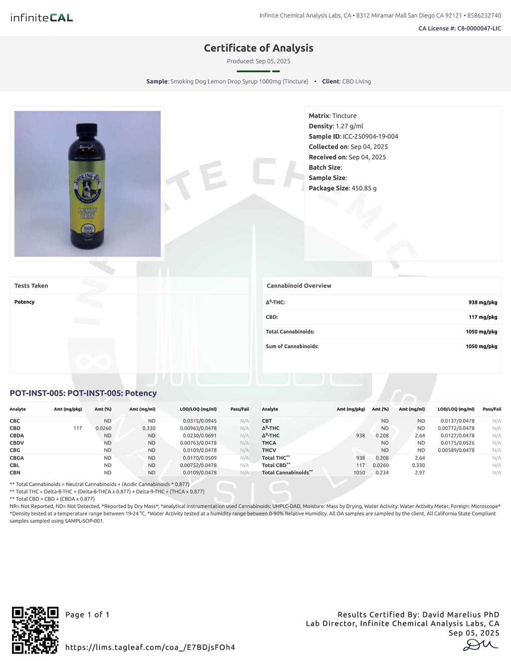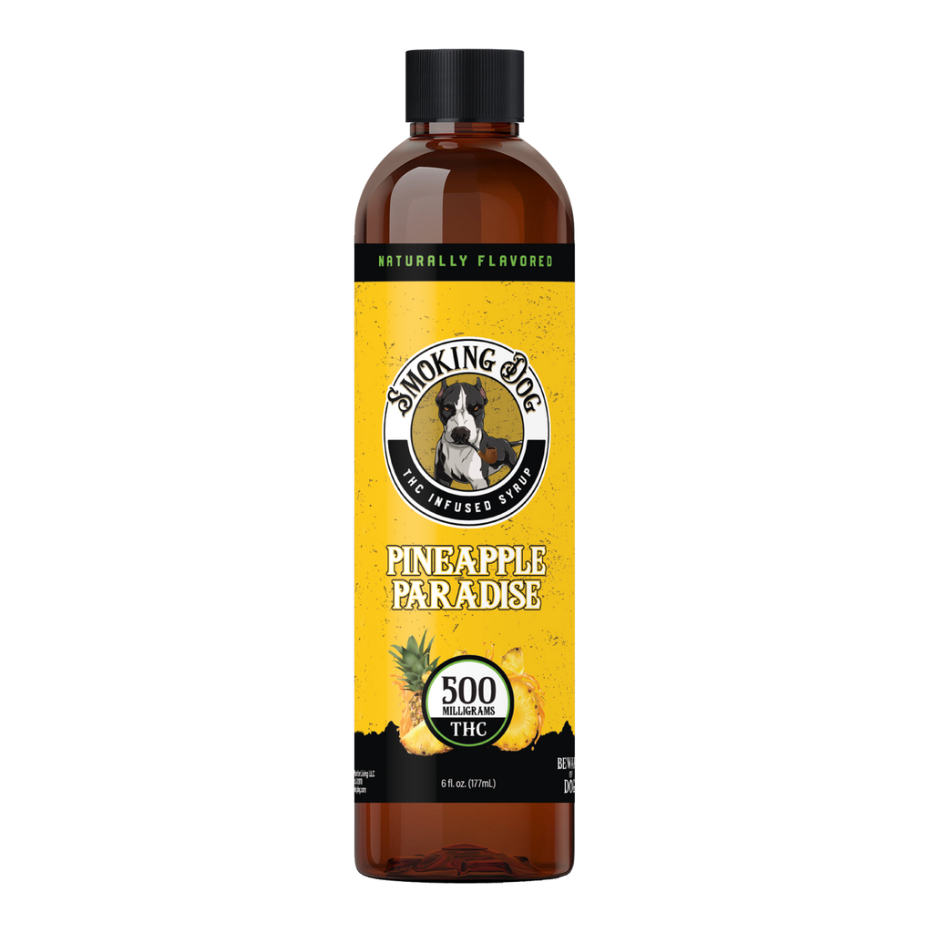 Experience a high-minded lifestyle with the fresh Smoking Dog Full Spectrum Syrup! Perfect for blending with bubbly water or sipping solo. Each container holds 500mg to 1000mg of Delta 9 THC extracted from Hemp. Smoking Dog THC Syrup is made using a Proprietary Water Soluble Nanotechnology process for quick-hitting effects - feel them in 30 minutes!